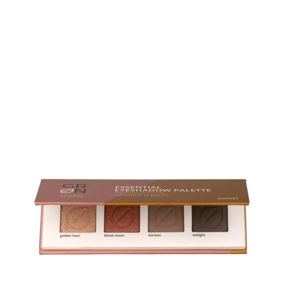 GRN Oogschaduw Palette Het Sunset oogschaduw palette is speciaal gemakt voor warme huidtypes. De mix van subtiele en intense nuances en het gebruik van matte en glinsterende kleuren biedt je een breed scala aan mogelijkheden. Dankzij hun rijke pigmenten geven de oogschaduws een intense kleur met een optimale fixatie. Bovendien kan de fluweelzachte textuur gemakkelijk worden gemengd met een antioxidantextract uit de schors van de magnoliaboom om een ​​gelijkmatige afwerking te creër