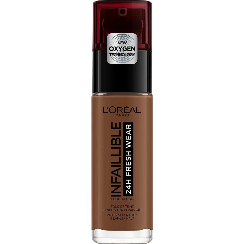 Lu0027Oreal Paris Foundation 380 ExpressoInfallible 24Hr Fresh Wear Foundation is nu verkrijgbaar in 11 kleuren met verbeterde formule. Met zijn nieuwe, luchtige formule voelt deze duurzame foundation lichter aan en ziet het er frisser uit.De unieke combinatie van oliën, duurzame polymeren en pigmenten zorgt voor een lichte textuur, een hydraterende werking en een natuurlijke afwerking, waardoor je huid de hele dag kan ademen. Deze foundation van 24 uur is gemakkelijk aan te brengen en men